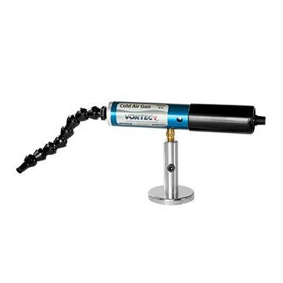 Cold Air Guns use vortex tube technology and filtered compressed air to produce sub-freezing air as low as -30 deg F for numerous industrial spot cooling applications. With no moving parts to wear out, Cold-Air Guns require no electricity at the target, just a compressed air source.